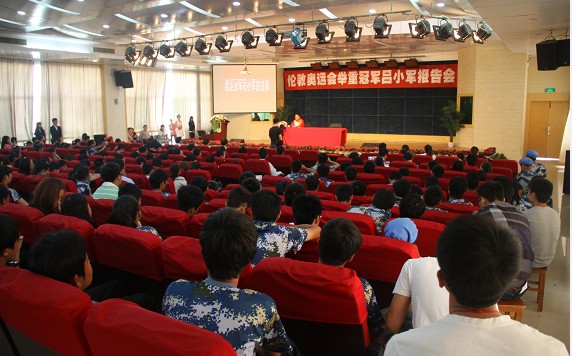 “朋友们、父老乡亲们,你们好。”他亲切质朴的问候赢得了全场观众热烈的掌声。9月20日上午,刚刚从伦敦奥运会回到家乡的举重冠军吕小军,亲临我校为400名新生代表讲了开学第一课。我校党委书记陈伟、党委常务副书记邹继康、校长助理左宗文出席报告会。