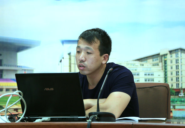 图为后勤物业部黄浩部长在会上作报告 摄影:王亮