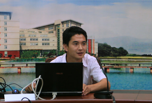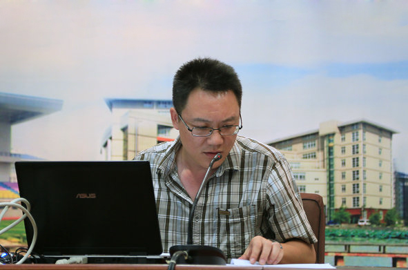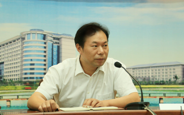 图为保卫科曾波科长在会上作报告 摄影:罗袁璐