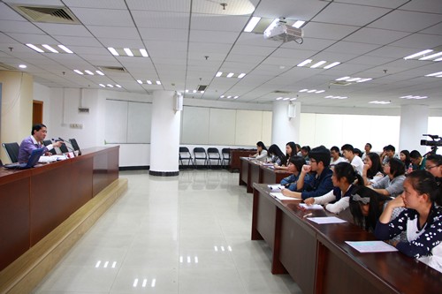 图为张孺海与我校学生交流新闻问题 摄影:金晶