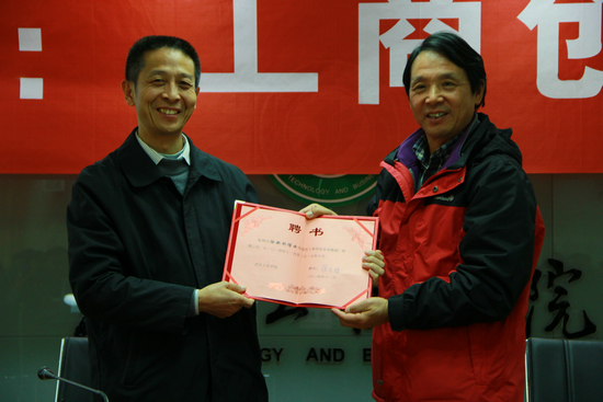 图为张金隆校长为徐新桥教授颁发聘书 摄影:王舒媛