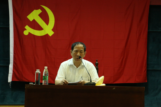 图为吴天祥同志为同学们上党课 摄影:谢伟