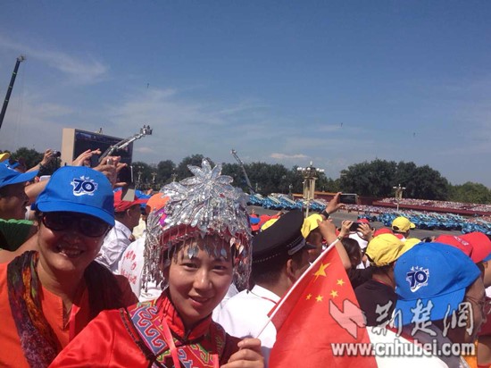 荆楚网消息(记者 郑青)9月3日,湖北鹤峰中营镇高原小学副校长、被称为全国“最美乡村教师”的邓丽,受邀参加纪念中国人民抗日战争暨世界反法西斯战争胜利70周年阅兵观礼活动。