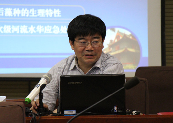 张智教授围绕“超声控藻技术在水华应急处置中的应用”展开此次讲座。“三峡工程水环境面临不容乐观的挑战,比如水质变化、次级河流富营养化、削弱带污染、饮用水源安全。”张智教授简单介绍了控藻技术的研究背景。