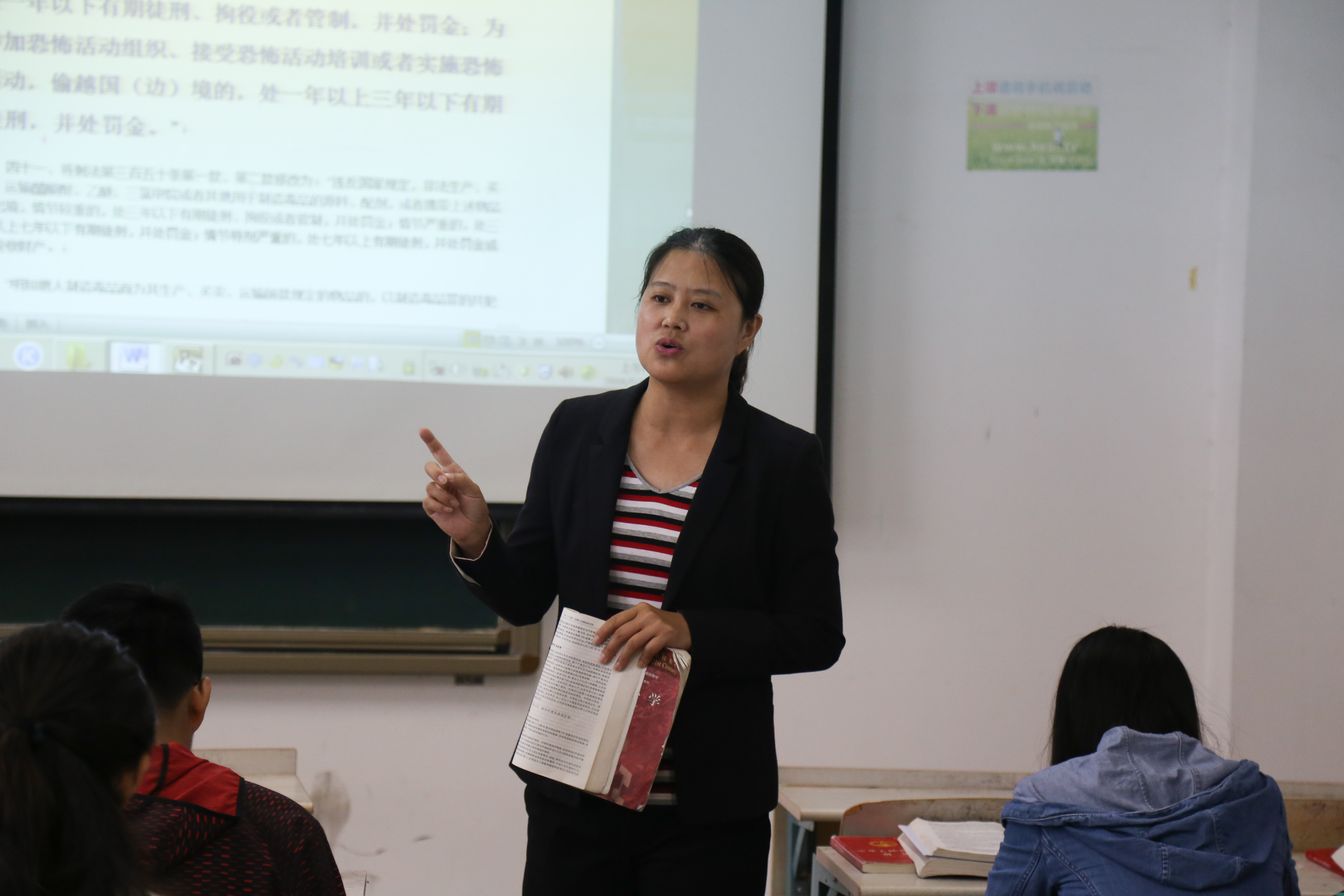 本节课不知不觉就结束了,15级法学专业1班的覃青青这样评价华老师的课堂:“华老师的课,不仅专业性强,趣味性更甚,而且刑法课成了法律故事课。我们都很喜欢她的幽默!”
