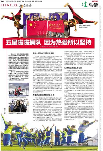 前不久,该校啦啦队又成了全校的焦点,在第35届世界大学生啦啦操锦标赛上,他们获得了集体街舞第四名、双人街舞第六名、双人花球第七名,集体项目创造了湖北省参赛队在该比赛中的历史最好成绩。