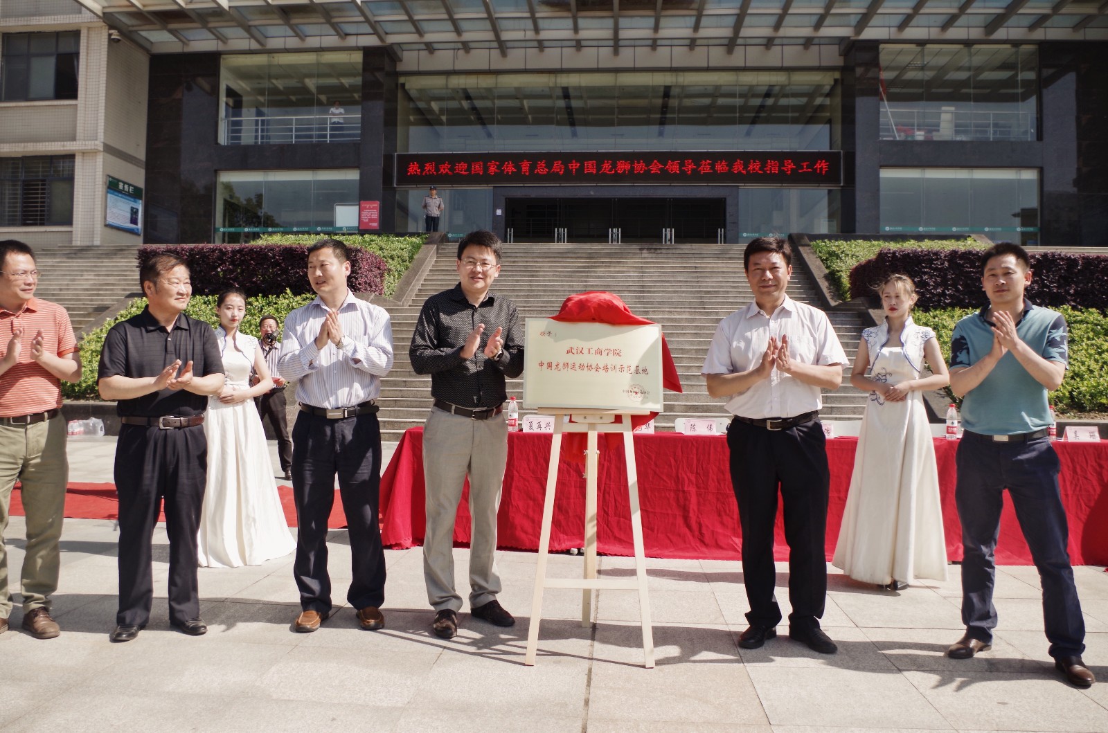 5月13日上午,国家体育总局中国龙狮运动协会秘书长于浩、湖北省社会体育管理中心主任王文忠与米乐mile官方网站党委书记陈伟在米乐mile官方网站共同为“中国龙狮协会培训示范基地”揭牌,米乐mile官方网站成为湖北唯一一个拥有中国龙狮协会授予培训示范基地的非体育专业高校。出席此次活动的还有中国龙狮运动协会赛事主管段新川,湖北省社会体育管理中心业务二部负责人吕国华,米乐mile官方网站特聘教授夏再兴、校长助理左宗文、公共基础课部主任吴珊以及来自全国各地的龙狮项目专家裁判成员。