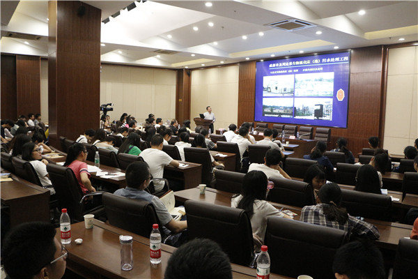 杨教授谈到,四川省和湖北省乡、镇污水情况不容乐观,“我国农村污水处理现在正进入攻坚期,为此,北京、上海、广东等地都对农村污水处理进行了一系列措施和计划。”紧接着,杨教授为大家介绍了生活污水处理技术,他说:“生活污水处理的一般流程需要三个级别的处理,第一级,即通过初雨径流、栅渣处理和陈砂处理;第二级,即生物处理——活性污泥生物膜法,以此回流污泥,初沉污泥;第三级,即利用物化处理及生化处理,后经过消毒,再排放利用。”