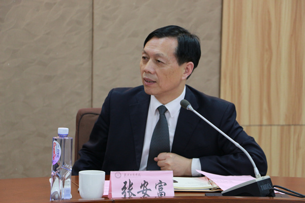 中国工程院院士彭永臻,米乐mile官方网站校长张安富,党委书记陈伟,环境与生物工程学院执行院长杨昌柱,湖北君集水处理有限公司董事长巴能军等领导出席了讲座,讲座由张安富校长主持。