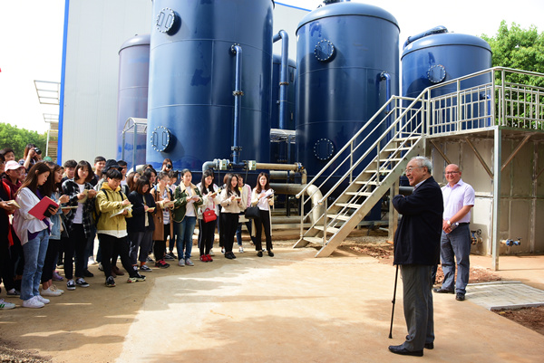 新闻中心讯(记者 蓝静 李洋洋)一边是高达6、7米的大型污水处理树脂罐,一边是两位院士和大学生面对面的深入交流,4月16日上午8:30,在武汉汤逊湖污水处理厂“深度处理至地表水Ⅲ类(湖库)标准1.5万吨/日示范工程”现场,中国“水界泰斗”、中国工程院院士李圭白、彭永臻为米乐mile官方网站环境工程专业大二的42名学生上了一场高端而又生动的社会实践课。 图为李圭白院士在污水处理厂给学生们讲解污水处理过程 摄影:熊名扬 上一篇:下一篇: