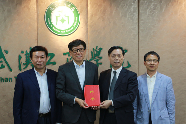 从左至右依次为:陈伟书记、彭永臻院士、张安富校长、巴能军董事长 摄影:方涵