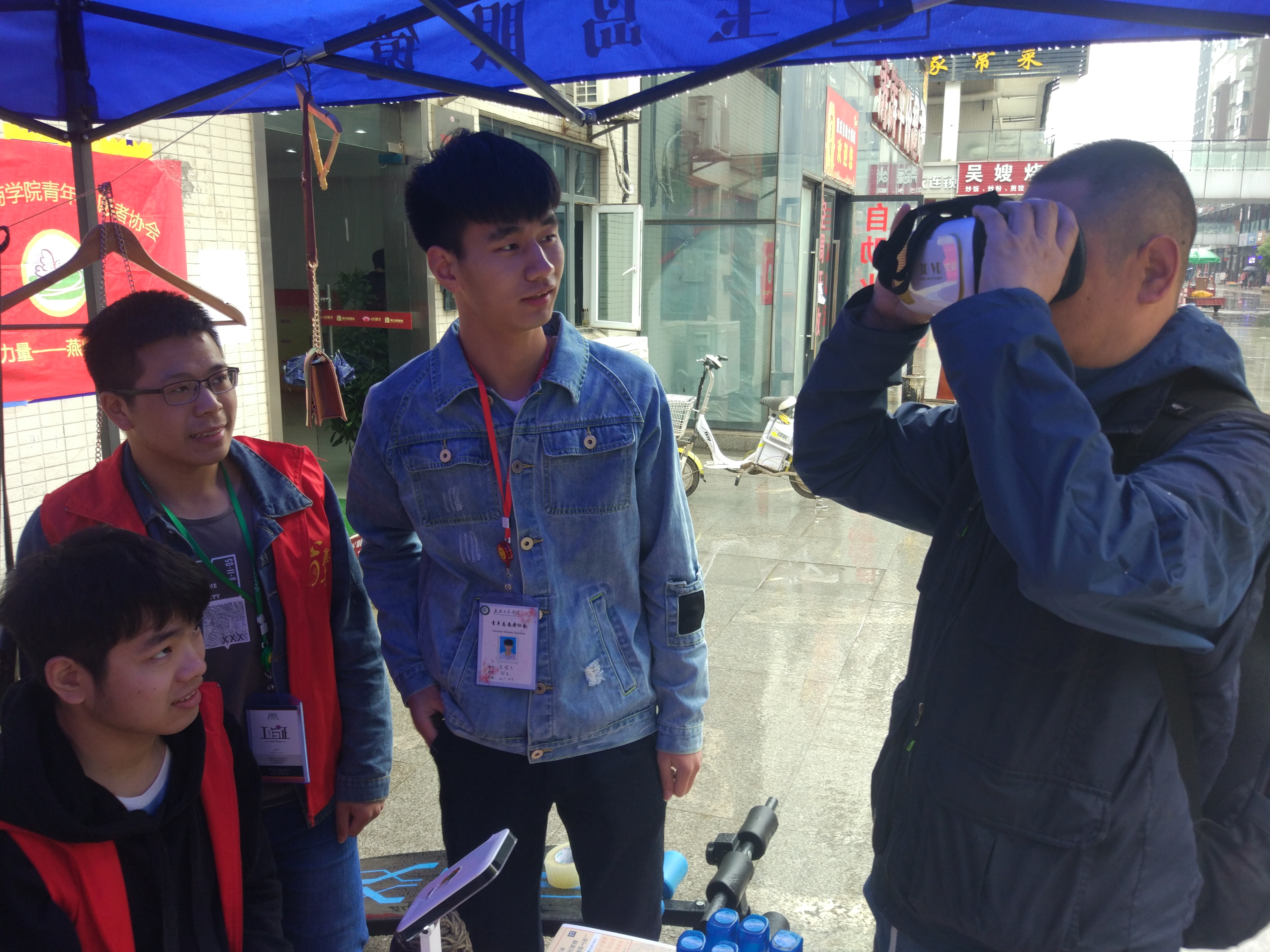 社区的居民们对志愿者们摆出的物品产生出了浓厚的兴趣,帐篷下面吸引了不少人前来选购,其中一位大叔手里拿着陶笛,脖子上挂着VR眼镜,原来这是住在东澜岸的社区居民易先生,他笑着对志愿者们说:“你们卖的东西都挺有意思的,我正好想尝试点新东西,同时也给你们志愿活动出一份力。”