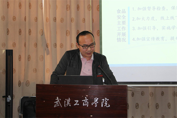 徐继安副部长在会上传达了《洪山区食品安全办主任严庆平局长的讲话要点》《武汉市市场监管局餐饮处处长莫文俊的讲话要点》《纪宏杰副区长在高校食品安全工作会上的讲话要点》及《区疾病预防控制中心进行高校食源性疾病培训》4个工作会议精神。