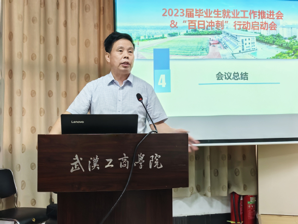 新闻中心讯(特约记者 杨凡)为贯彻落实教育部关于开展2023届高校毕业生就业“百日冲刺”行动任务和学校就业工作部署,全力促进毕业生更充分更高质量就业,5月25日下午,学校召开2023届毕业生就业工作推进会暨“百日冲刺”行动启动会。校长孔建益出席会议并讲话,副校长赵北平主持会议。各二级学院院长、党总支书记、学生就业创业指导中心、学生工作部负责人及2023届毕业班辅导员参加会议。