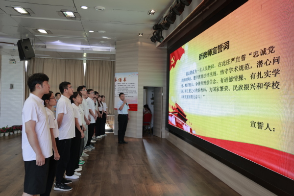 图为刘生元书记带领全员举行师德宣誓仪式 摄影:芮雨欣