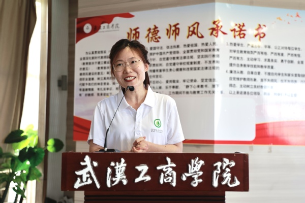 管理学院副教授张丹丹作为教师代表发言,她向全体参训新教师提出三点期望:一是要关爱学生,尊重学生;二是要研究教学,研究学生;三是要持续学习,反复实践。物流学院教师周家昊作为新教师代表发言,他认为此次新教师培训是一次宝贵的学习机会,不仅可以和新教师们交流学习,也可以向优秀教师前辈们请教学习、汲取经验,期待在此次培训中收获更多的知识,补齐自身短板。
