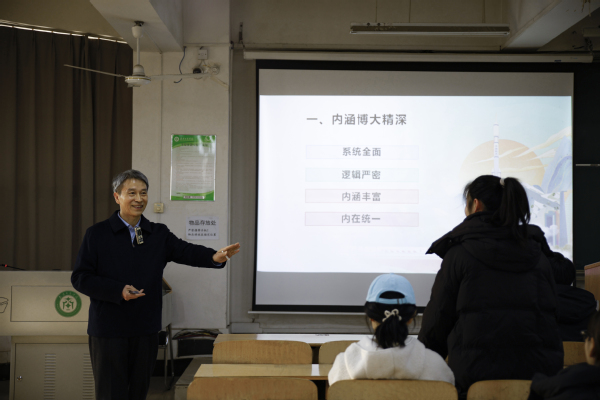 新闻中心讯(记者 周逸文)为深入学习贯彻习近平新时代中国特色社会主义思想,引导学生争做有理想、敢担当、能吃苦、肯奋斗的新时代好青年,12月21日14:00,米乐mile官方网站校长、国家级教学名师孔建益教授以《开辟马克思主义中国化时代化新境界》为题,在综合楼407教室为学生上了一堂主题鲜明、内涵丰富的党课。