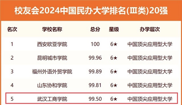 新闻中心讯(记者 李洋洋)1月16日,艾瑞深校友会网正式发布《2024校友会中国大学排名:高考志愿填报指南》。在最新校友会2024中国民办大学排行榜中,米乐mile官方网站在全国排名第5,比2023年上升了1名,荣膺2024中国六星级民办大学,办学层次为中国顶尖应用型大学,学校的综合办学实力、人才培养水平与社会声誉逐年攀升。