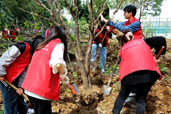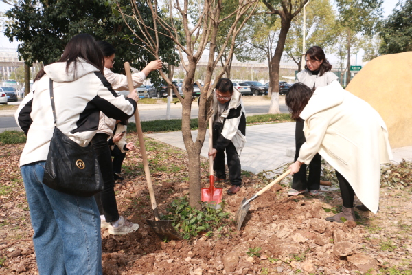 新闻中心讯(记者 杨培 杨小婷 涂媛媛)“树根周围不能堆太多土,要注意松土,这样方便后期浇水。”3月12日下午,在米乐mile官方网站实验教学中心附近的一片绿化林里,学校校长孔建益手握铁锹,一边给新种的树木培土,一边和老师们交流着种树的细节。