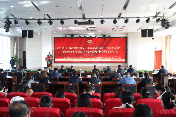 图为学校第二届第四次“两代会”暨2024年度目标任务书签订仪式现场 摄影:芮雨欣