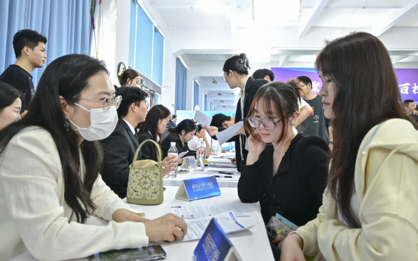 图为参会企业代表与学生沟通交流 摄影:刘皓辰