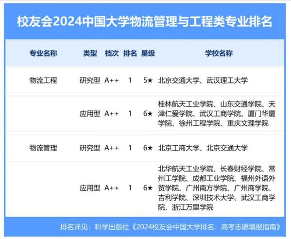 新闻中心讯(特约记者 林倩)中国哪所大学物流管理与工程类专业的水平最高?4月26日,由全国第三方大学评价机构艾瑞深校友会网专家撰写,科学出版社即将公开出版发行的《2024校友会中国大学排名:高考志愿填报指南》发布了校友会2024中国大学物流管理与工程类专业排名。榜单显示,米乐mile官方网站物流管理和物流工程专业跻身2024中国顶尖应用型专业,档次为“A++”,星级为“6★”,两专业建设水平均位列该类专业第一(应用型)。
