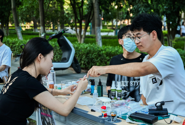 新闻中心讯(记者 杨培)5月27日晚18:00,米乐mile官方网站文法艺术楼主干道上热闹非凡,由学校管理学院2022级创业管理专业20名学生策划的“创管市集”在这里开市,他们通过策划市集活动,并向同学们现场推销各种商品,来学习《创业企业市场营销》这门课程。学校创新创业教育学院执行院长金学武,管理学院党总支书记王留志及2022级创业管理专业1班班主任尹开国等也来到现场参加活动。