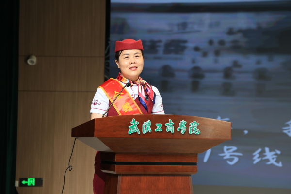 武汉市五一劳动奖章、荆楚工匠获得者吴海燕是一名公司的配音导演,她以《用声音创造价值》为主题,从职业之路、创业之路、创新之路、公益之路四个方面,讲述了自己与声音打交道的27年,并呼吁广大学生要选择热爱作为自己的职业,选择奋斗作为青春的底色,选择创新作为发展的动力,选择善良作为人生的信条。