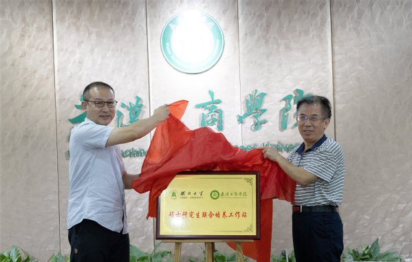 图为学校党委副书记幸福堂与湖北大学艺术与设计学院副院长潘峰共同为硕士研究生联合培养工作站揭牌 摄影:杨培