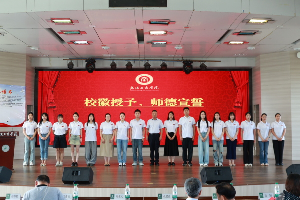 刘生元书记为新进教职工代表佩戴校徽,衷心祝贺新进教职工们成为武工商的一份子,并带领大家举行了新进教职工入职宣誓仪式,签署了《教师师德承诺书》。