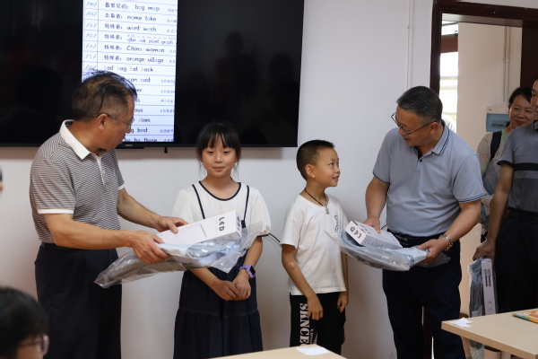 图为幸福堂副书记一行在老年人互助活动中心慰问当地留守儿童并捐赠书包、台灯等学习用品 摄影:周逸文 芮雨欣