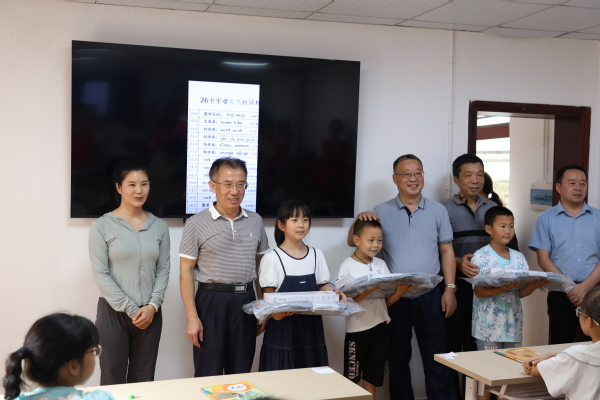 图为幸福堂副书记一行在老年人互助活动中心慰问当地留守儿童并捐赠书包、台灯等学习用品 摄影:周逸文 芮雨欣