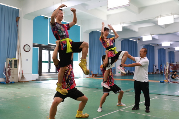 此次参赛的队员是由公共课部和校团委从学校精英龙狮社中选拔出来的。公共课部教师周龙、邹海生、邓彪担任本次参赛代表队的教练,其中周龙担任领队和主教练。他们在暑期带领16名队员开展了为期30天“高强度、严要求”的集训,采取体能训练和技巧训练相结合的方式,针对队员们的节目编排和动作技巧掌握情况进行一一指导,对于高难度动作的训练,更是反复示范、详细讲解,不断提高队员们的身体素质和竞技能力。