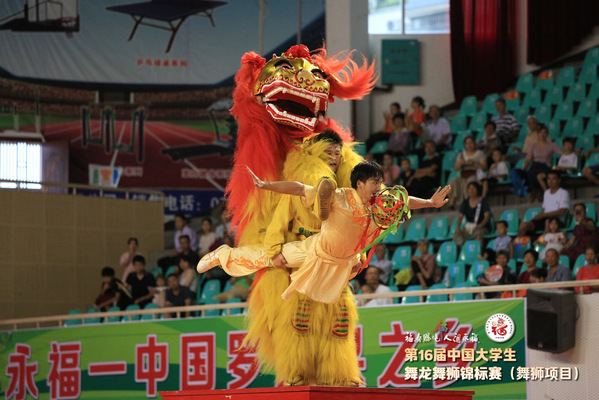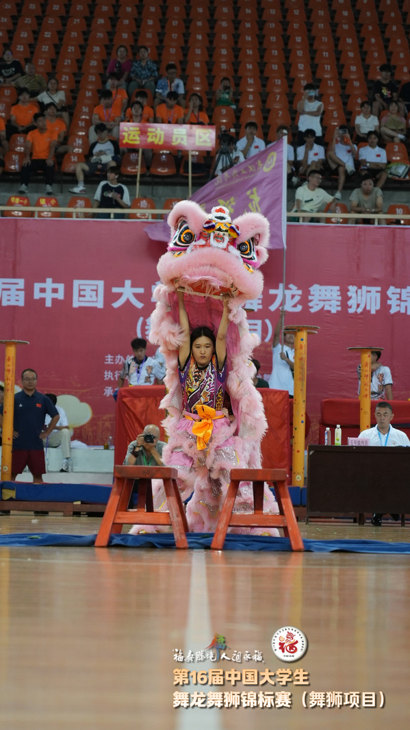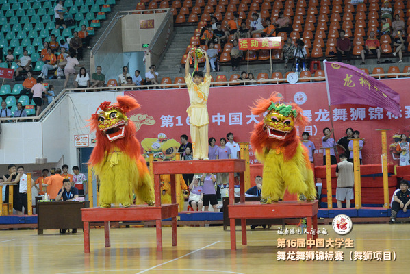 据悉,第十六届中国大学生舞龙舞狮锦标赛(舞狮项目)由中国学生体育联合会主办,分男子组、女子组,设南狮自选套路、北狮自选套路等多个比赛项目,吸引了全国43所高等院校的600余名运动员、教练员参赛。