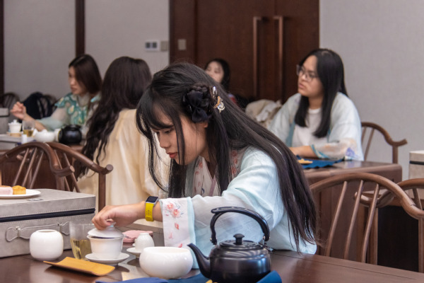 “品茶不仅是简单的饮茶行为,更是一种心灵的修行和生活的艺术。刘丽君老师的培训让我学会了‘静心’,这能让我在今后的日常生活与学习中变得更加细心、耐心。”应用技术学院2024级计算机应用技术专业的学生鄢丽玲学习茶艺后分享道。