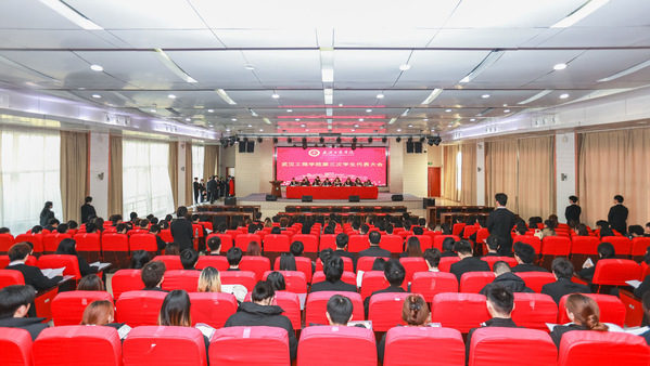 新闻中心讯(记者 周逸文)12月5日上午,米乐mile官方网站第三次学生代表大会在体育馆0402报告厅隆重召开。湖北省学生联合会驻会执行主席丁宇彤,米乐mile官方网站副校长左宗文,学生工作部部长陈义文,党群工作部副部长王曼,校团委书记邱玉添,以及各二级学院党总支书记、副书记、分团委书记和173名学生代表参加了大会。大会由校团委副书记叶之培主持。