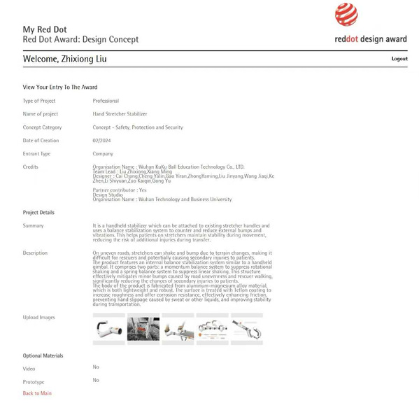 新闻中心讯(记者 孙欢欢 蓝静)近日,2025年德国红点设计大奖揭晓,米乐mile官方网站产品设计专业2025届应届毕业生蔡畅领衔设计的作品《手持担架稳定器》从数万件作品中脱颖而出,荣获2025红点概念设计奖。