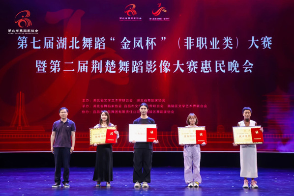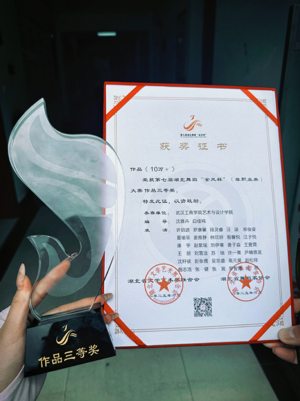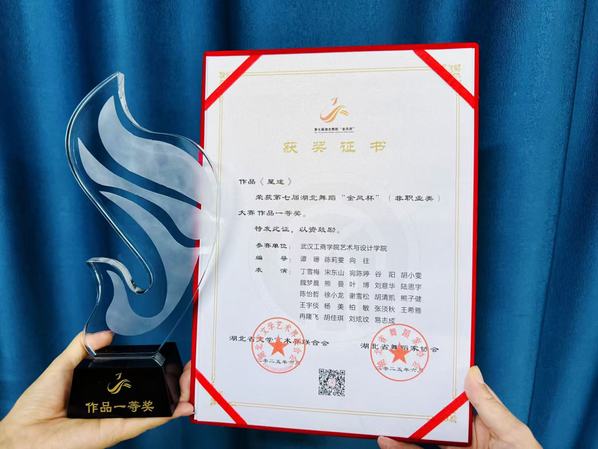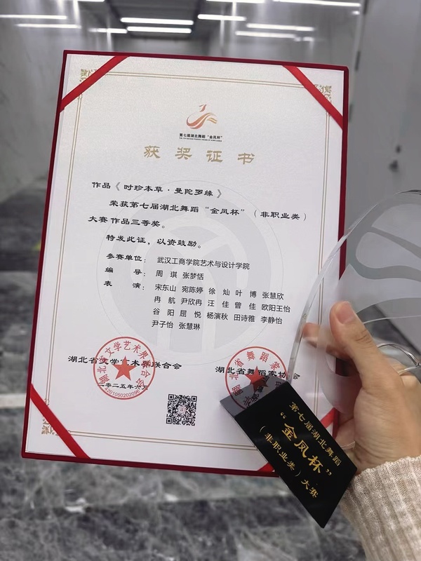 新闻中心讯(特约记者 张濛月 记者 李洋洋)6月23日,第七届湖北舞蹈“金凤杯”(非职业类)大赛终评在湖北宜昌落下帷幕,米乐mile官方网站艺术与设计学院舞蹈表演系选送的3部原创舞蹈作品精彩亮相,喜获佳绩,其中《星途》摘得作品类一等奖,《10万+》《时珍本草・曼陀罗缘》斩获作品类三等奖,学校还获评“优秀组织单位”。
