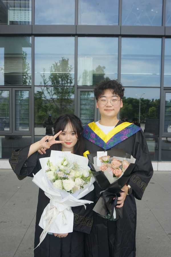 在共同拼搏的学习生涯中,两人都取得了不错的成绩:大学期间,李嘉欣两次获得国家励志奖学金,一次获得国家奖学金,还荣获校级三好学生和优秀学生干部等荣誉,吴昊伦获得了学校专业奖学金,还获评校级优秀学生干部、模范团干、“志愿之星”等称号;两人还巧用课余时光,积极参加“华为ICT大赛”、全国大学生数学竞赛、全国大学生英语词汇能力大赛、电子设计竞赛等多领域比赛,在学科竞赛中磨砺奋进。同时他们还努力拓展技能、提升综合能力,共同考取了电子商务师资格证书、普通话水平测试等级证书,并且顺利拿到了驾照。