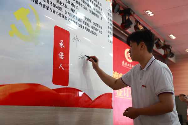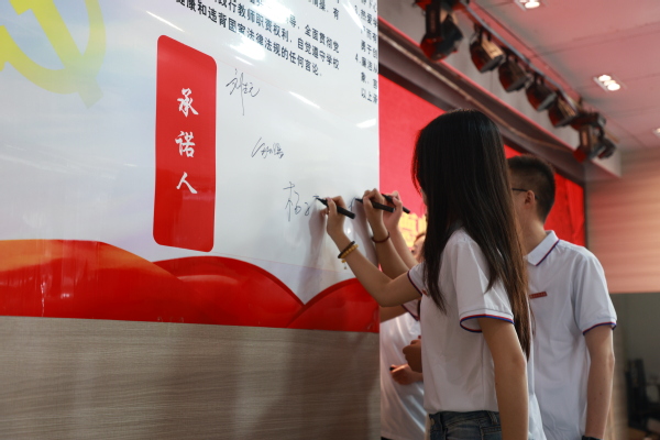 图为签订《师德师风承诺书》环节 摄影:芮雨欣