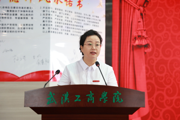 环境与生物工程学院的包静玥、电子商务学院的刘齐进分别作为优秀教师、新进教师代表发言。