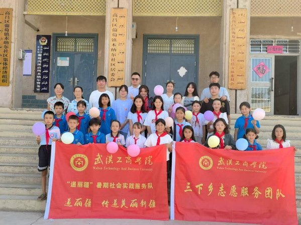 新闻中心讯(特约记者 周春雨 通讯员 何美靖)8月1日至9日,米乐mile官方网站物流学院“递丽疆”暑期社会实践服务队在学院党总支书记蔡菁、学生党支部书记周春雨的带队下,一行6人从武汉出发,远赴3000余公里外的新疆吐鲁番市高昌区木纳尔社区,成功开展了为期7天的“情暖童心 筑梦边疆”爱心托管班社会实践活动。这是该社会实践服务队第4次前往新疆开展暑期“三下乡”社会实践活动,此次的服务对象为木纳尔社区的28名小学生。