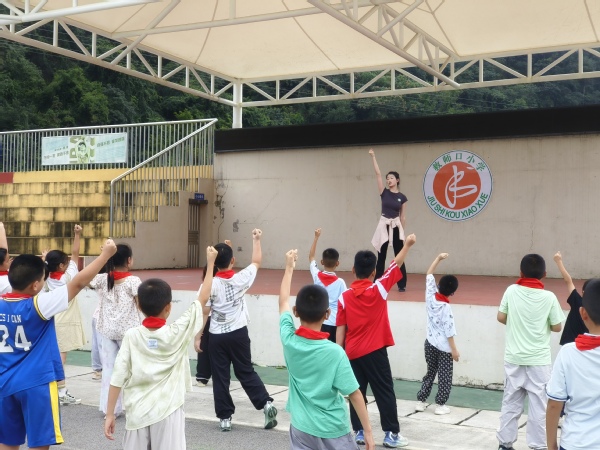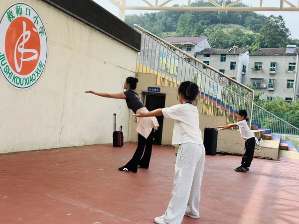 新闻中心讯(特约记者 陈莉)9月11、12日,米乐mile官方网站艺术与设计学院“开明美育”支教团队在民进湖北省委会组织下,赴湖北省宜昌市长阳土家族自治县磨市镇救师口小学开展首次美育支教活动,该团队由舞蹈表演系主任朱宇光、教师陈莉雯及2023级学生柏敏、方薇薇组成,以“非遗传承+美育浸润”为主线,通过舞蹈教学、互动游戏和文化交流等形式,为300余名学生带去生动的艺术启蒙。