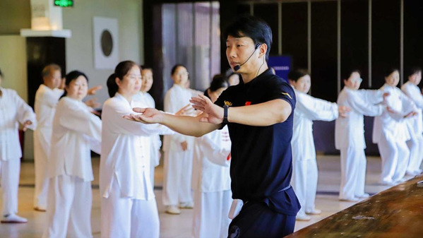 本次实训中,他从基本步法、身法、手法入手,通过分解示范、分组练习、个别指导等分层教学方式,围绕“发力特点”“呼吸配合”“攻防要素”等多方面,对陈式太极拳精要十八式进行了详细讲解,帮助学员们进一步精准掌握动作要领。