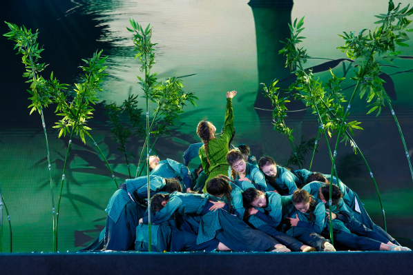 整场汇演气氛热烈,掌声与欢呼声此起彼伏。环境与生物工程学院2025级新生刘紫怡观后感慨:“今年的迎新晚会太精彩了!《净美》这个节目尤其让我震撼——舞者用轻盈的舞姿模拟塑料袋的飘动,结合灯光效果,娓娓道出李圭白院士‘净水人生’,既富创意又引人深思,让我对生态环保事业有了更深的理解。”