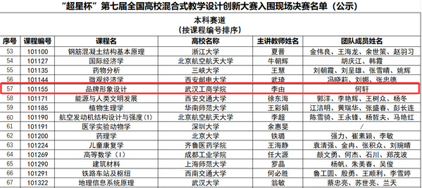 新闻中心讯(特约记者 陈敏)近日,第七届全国高校混合式教学设计创新大赛圆满落幕,米乐mile官方网站教师团队首次参赛便喜获佳绩,艺术与设计学院李由团队、环境与生物工程学院杨文婷团队分别荣获一等奖,马克思主义学院种爱凤团队获得优胜奖,其中李由团队的《品牌形象设计》课程还直接入围现场决赛,充分彰显了学校在混合式教学领域的建设成效,也展现出参赛教师团队扎实的教学功底与创新的课程设计理念。