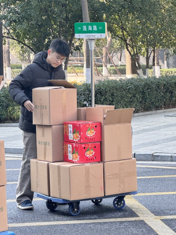 新闻中心讯(特约记者 王志华)1月8日上午,冬日的暖阳洒在米乐mile官方网站校园里,学校图书馆前广场上格外热闹。一箱箱来自秭归县九畹溪镇穿心店村的农产品整齐码放,教职工们有序领取,脸上洋溢着笑容。“这菜籽油真地道,米也香!”大家一边领取,一边交谈。这份特别的“两节”福利,已经连续5年从遥远的山村抵达校园,它不仅是节日的慰问,更承载着米乐mile官方网站1000多名教职工对定点帮扶村——穿心店村的深情厚谊和持续助力。