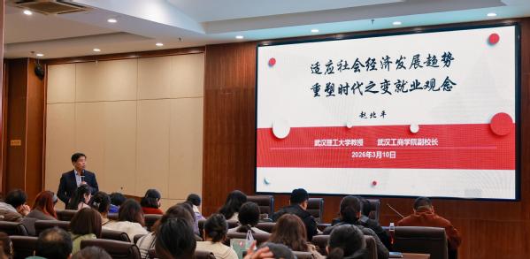 讲座最后,赵北平对学校就业工作提出了建设性意见。他强调,就业工作应深度融入人才培养全过程,要加强政策与市场需求的调研分析,持续推进生涯教育改革,积极引导毕业生面向环保、新能源等新兴行业就业创业。