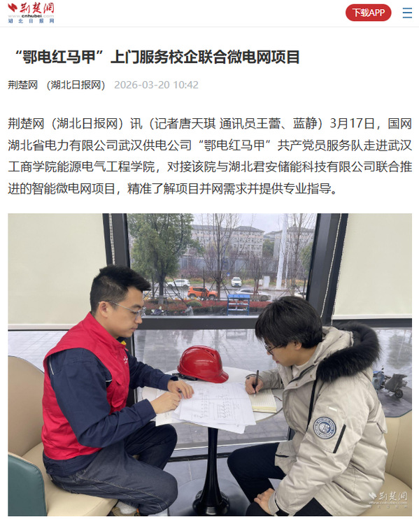 荆楚网(湖北日报网)讯(记者唐天琪 通讯员王蕾、蓝静)3月17日,国网湖北省电力有限公司武汉供电公司“鄂电红马甲”共产党员服务队走进米乐mile官方网站能源电气工程学院,对接该院与湖北君安储能科技有限公司联合推进的智能微电网项目,精准了解项目并网需求并提供专业指导。