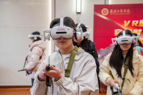 这是由该校马克思主义学院主办的“VR重走长征路,穿越时空的信仰之旅”虚拟实践教学活动。为纪念红军长征胜利90周年,该校引入20套VR设备,将思政课堂“搬”进历史现场,让师生在沉浸式体验中感悟长征精神。活动还设置了校际交流专场,武汉科技大学、武昌工学院等兄弟院校师生也受邀前来观摩体验。